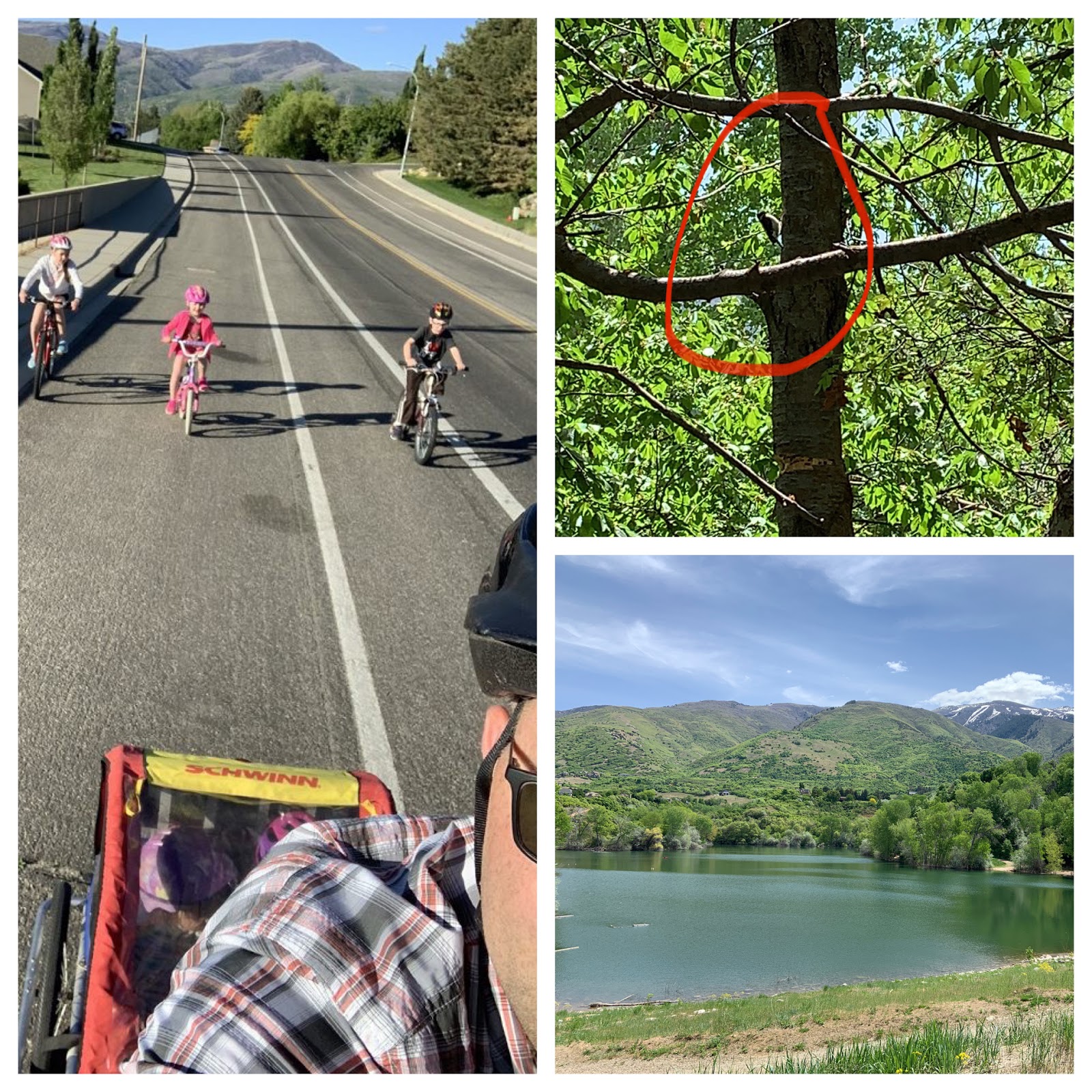 Saturday morning Swa, Brynn and I (the only ones who slept over), got dressed, grabbed some McDonald's for breakfast, and then went for a 3 mile walk on the Kay's Creek Trail in Farmington. It was beautiful and shaded! We saw a woodpecker and I got a video of him. Dan was pretty adventurous too and took all the kids on a bike ride!