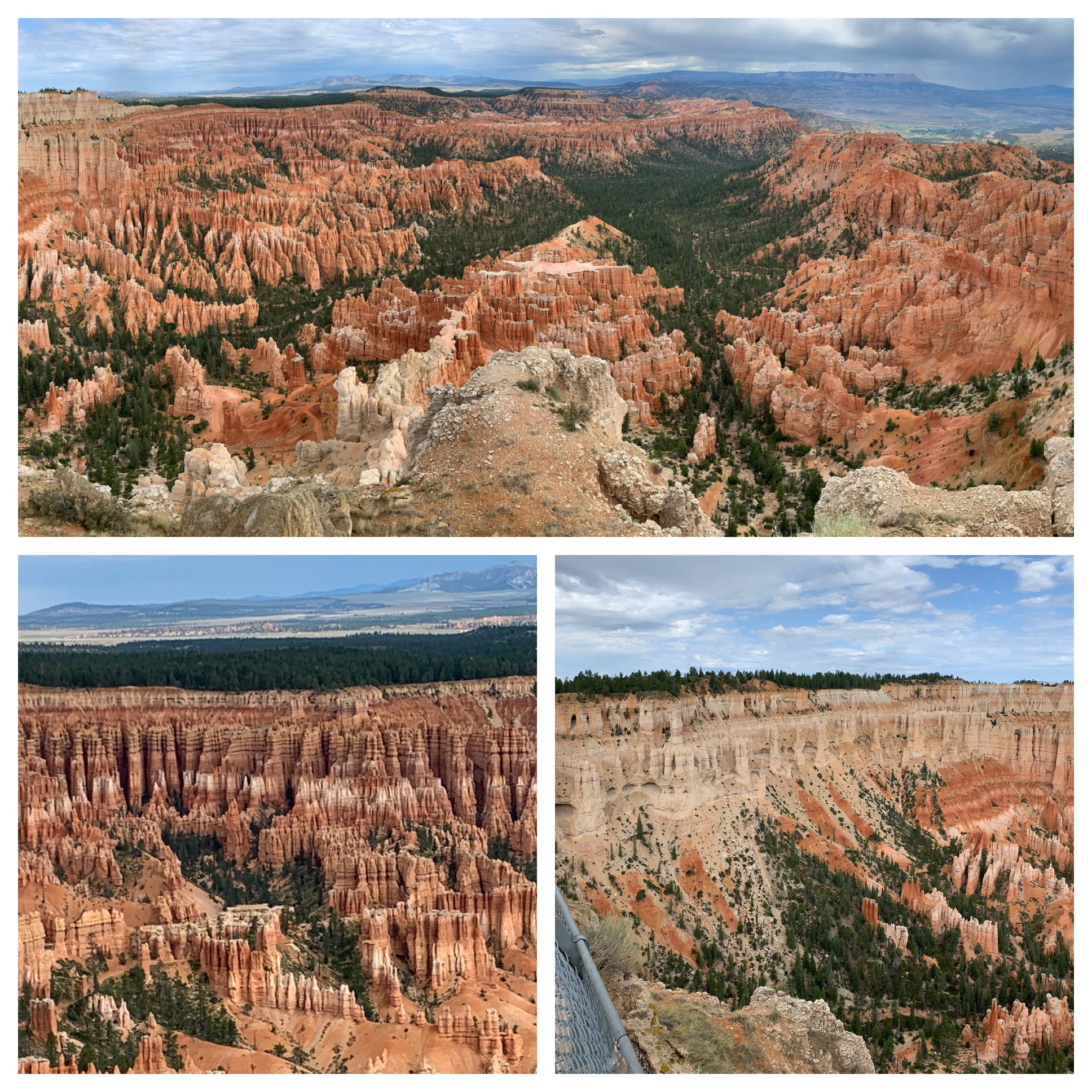 Wednesday we woke up to the sound of rain around 6 am. So we were much slower moving. We ate around 7, got dressed, then headed to a dump station. The rain picked up so we decided to look for ponchos and unfortunately only found some for $8! Way too much! We also, noticed the fridge in the RV was warmer than normal. So we called them and successfully reset it. That was the beginning of some problems. Thankfully, the rain let up and we headed out for more hiking! We started by riding the shuttle to Bryce Point look out. One of our shuttle drivers was Kerry Barney who used to live in our stake and was the High Councilman over our ward for a time. So fun to reconnect with him.