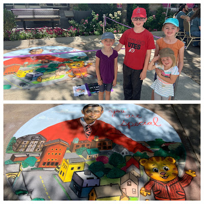 Friday I went walking with Rachael, the kids played with playdoh, and we packed lunches and went swimming at the Winegar's. Anna had her final day of Descendants camp and had a little performance. She did awesome, had fun, and was so brave! So proud of her! After more swimming, the basement guy came again to check on things. We had the 3 Day kids here again for a couple hours after dinner. After kids were in bed, I worked on a grocery order and we watched the Jazz game. Dan was home late from the first day of the Utah Foster Care Chalk Art Festival.