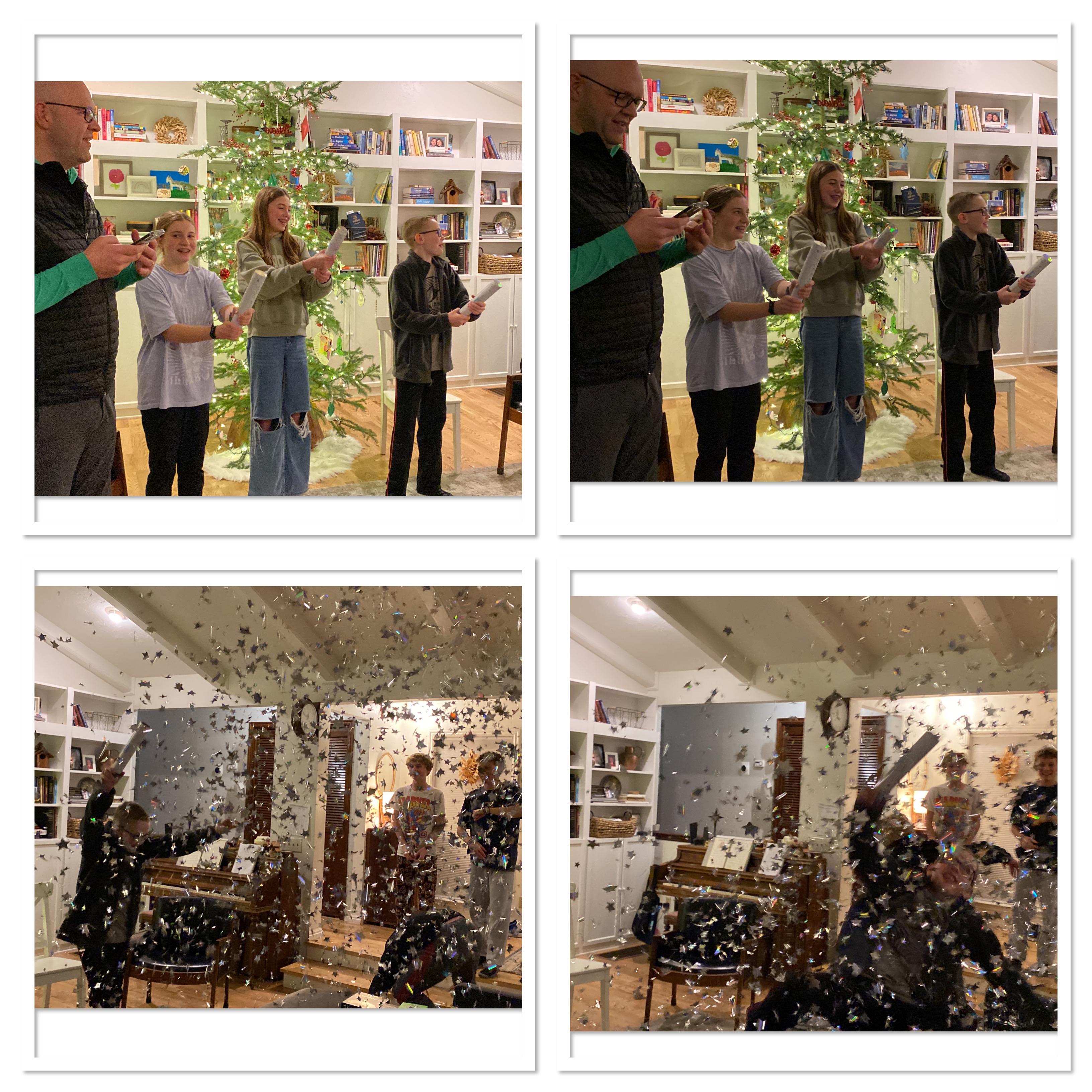 31st- Sunday: We all slept in. We didn’t start breakfast until 9:45ish. We all showered and made it to church on time. Ben gave a wonderful talk about Jesus feeding the 5000 and all the lessons that story teaches us: treat people the way you want to be treated, service, missionary work, and Christ’s grace is MORE than sufficient. For the 5th Sunday lesson, was watching an Area Authority broadcast from November about being unified in Christ. McKenna drove home from church and is getting better! We all quickly changed and grabbed a snack. We headed to visit Grandma Pat! She looked great and was sharp and totally with it. We made a quick stop at the Murray City cemetery to visit the Condie graves. We grabbed a few things at our house and then drove to Layton. We had an appetizer dinner which was delicious! The kids and Dan built some Legos, played the Switch, and then we played Skyjo. We did an early countdown for New Year’s Eve and left by 9:50. We put the three girls to bed and then hung out at the Moulton’s with some other neighbors. They had fun confetti guns and we played games and ate some more. Dan and I both felt like we need to take a break from food for a while!