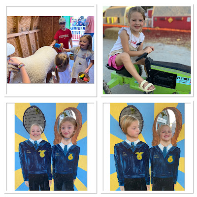 Sept. 16th- Saturday: Dan and I left by 6:20am for Price to see Ben’s last mountain bike race of the season. He did great once again! He started 17th and only dropped to 21st out of 60 something boys. He had fun and felt good about his performance. We left at 11/11:30 and drove Truman home and ate Wendy's on the way. I also studied my music theory book. Back at home, McKenna and the girls made yogurt parfaits and mini blueberry muffins from scratch for breakfast! I was very impressed. We got home at 1:40 and I took Alice to her birthday party and picked up groceries. Dan got a little nap. We met my parents and Mickelle, picked up Alice from the party, and then went to the State Fair! The weather was perfect and we saw a unicycling unicorn show that was so funny. We looked at the butter sculpture, the crafts, and the animals. We got dinner also. We did the big yellow slide, the helping hands exhibit, and the three girls got to ride a ride. Such a fun and busy day!